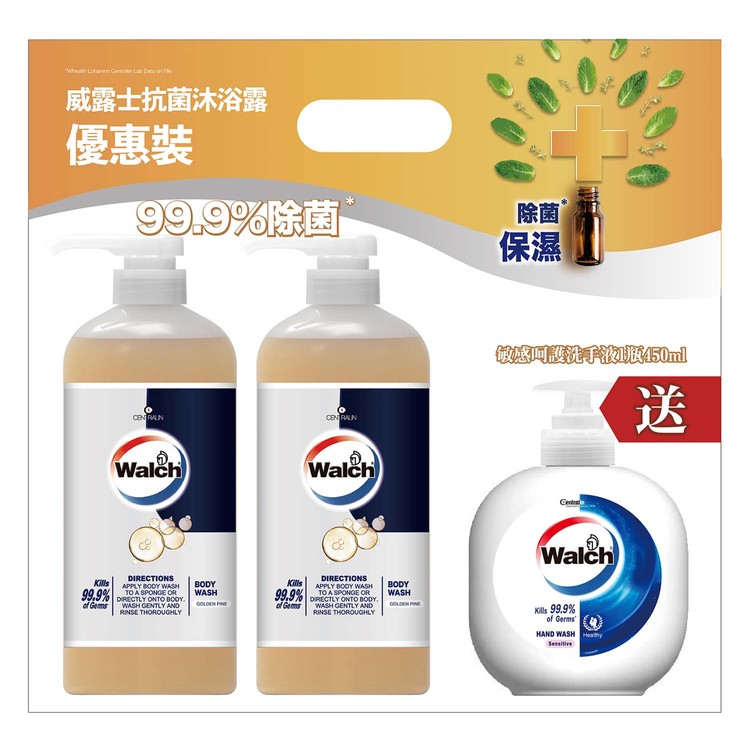 【澳門發貨】Walch威露士金裝殺菌沐浴露900ml*2支裝+敏感呵護洗手液450ml