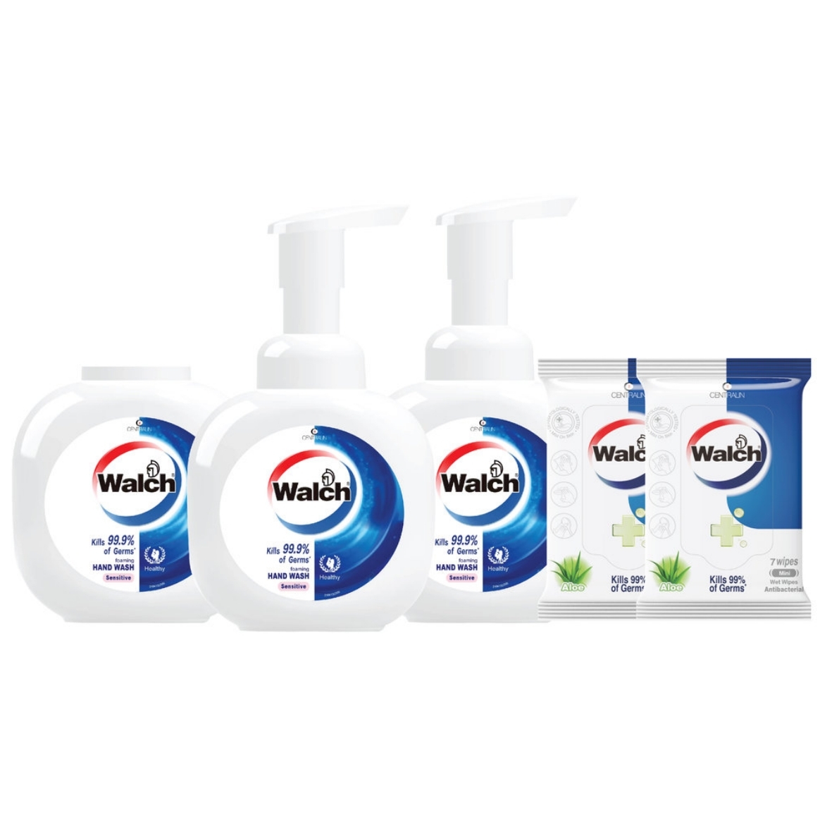 【澳門發貨】Walch威露士洗手液敏感呵護290ml*2+補充裝290ml+Walch威露士消毒濕巾蘆薈7片裝*2