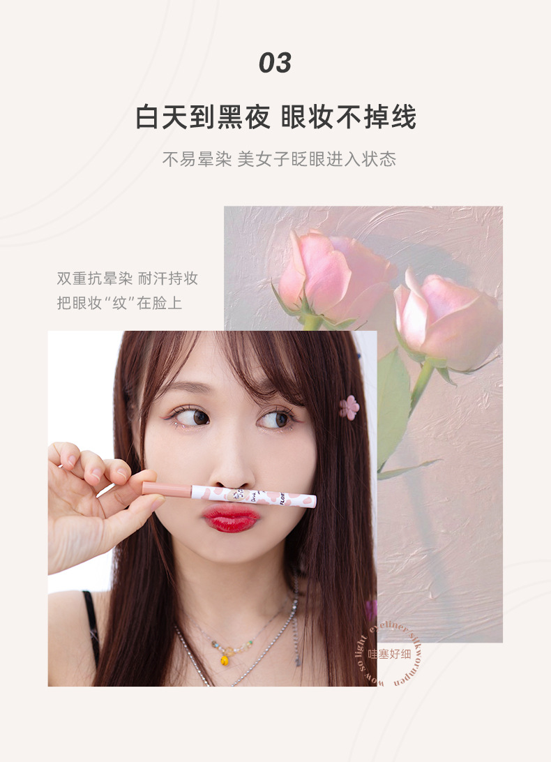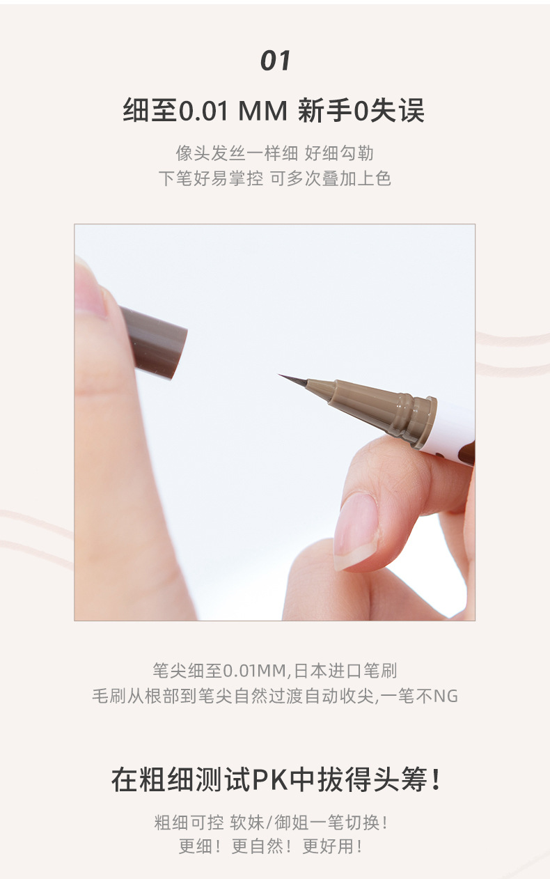 眼線筆具有極細的0.005毫米筆尖,可以準確地定位每根睫毛,畫出完美的眼線,同時也是多功能的,一支筆就能完成所有眼妝。