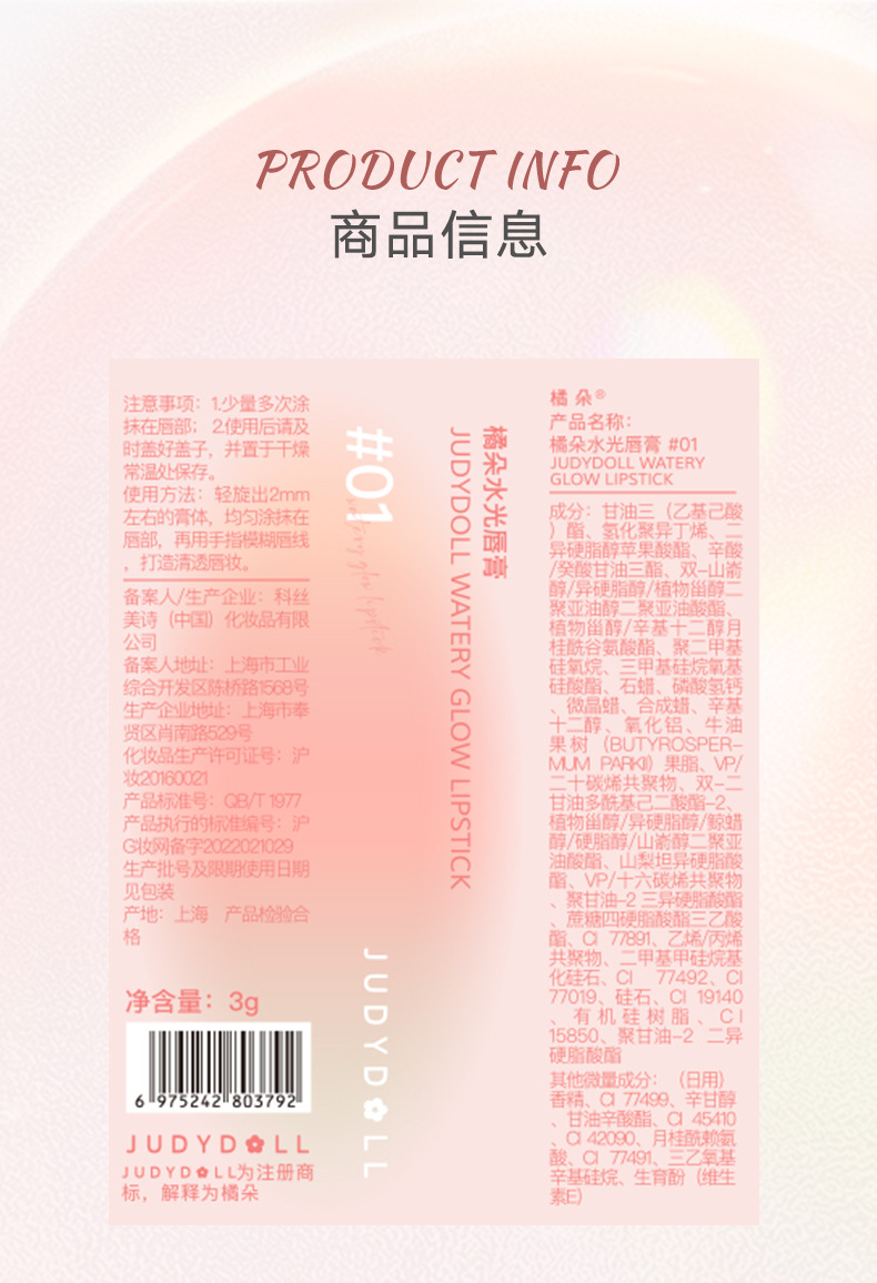 產品:Judydoll橘朵靈光唇膏