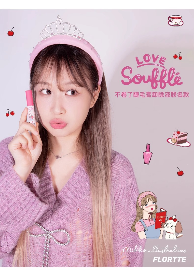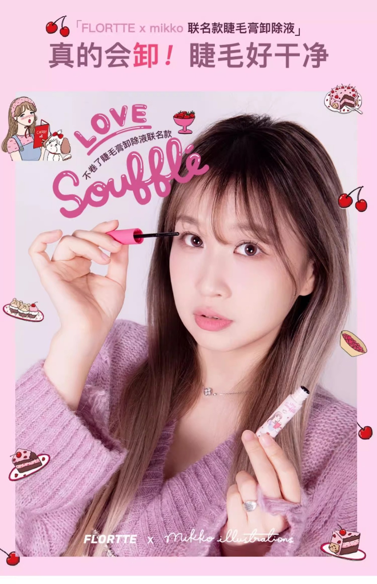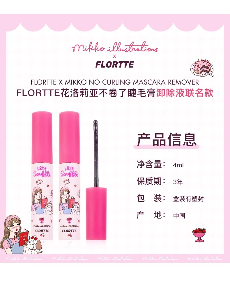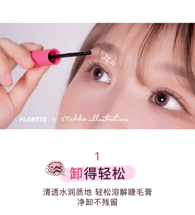 FLORTTE 花洛莉亞MIKKO聯名睫毛膏幫助溶解睫毛膏,無殘留,溫和護理每根睫毛。